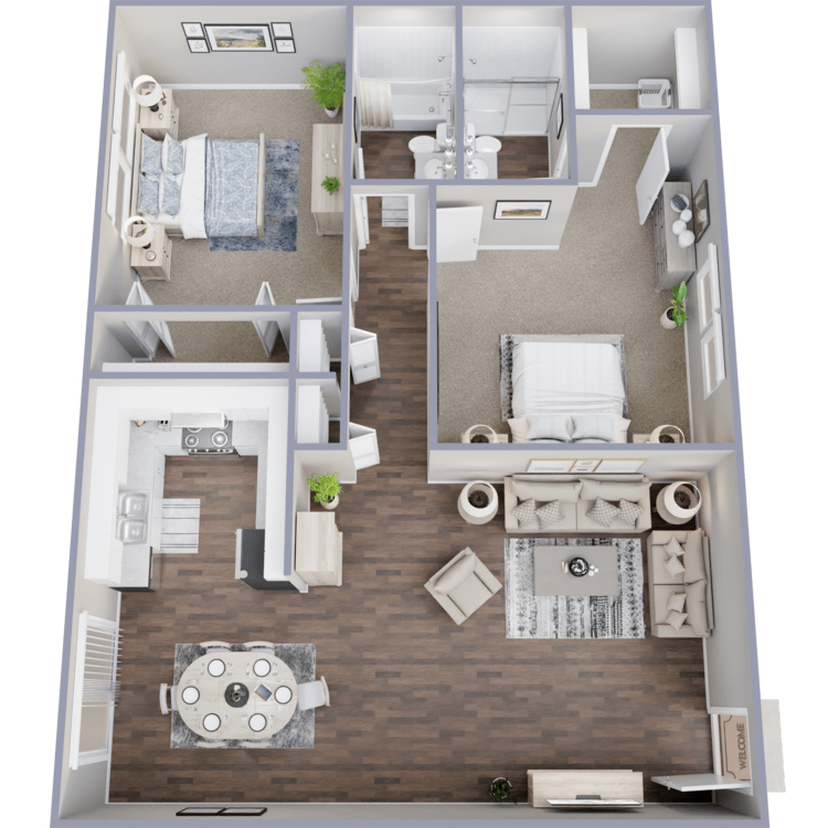 Plans, prices, and specifications subject to change without notice. Finishes may vary depending on the exact unit/floor plan. 3D floor plans are artistic representations. <br> The rental rates advertised represent base rent only. Additional monthly fees may apply and can include, but are not limited to, charges for utilities such as electricity, water, sewer, and trash collection, as well as pest control, pet rent, parking, and other applicable service fees. Prospective residents are encouraged to inquire about all potential charges that may be assessed in addition to the base rent.